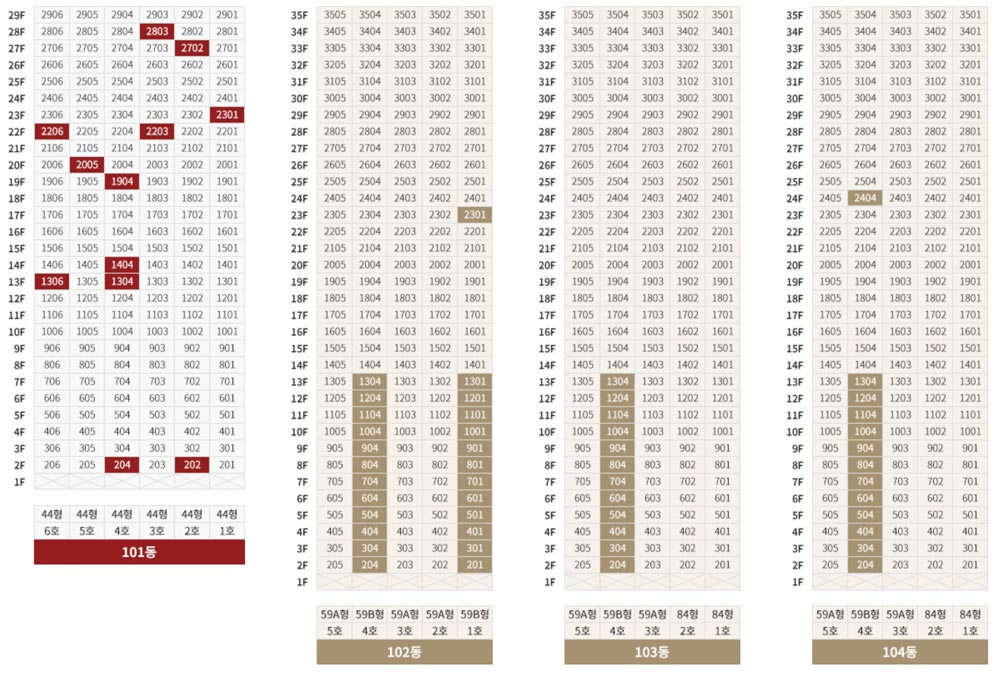 44㎡ – 1명, 59㎡ – 13명