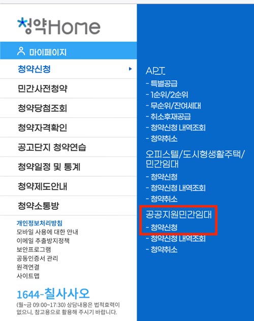 청약홈 에 들어가서 청약신청 > 공공지원민간임대 – 청약신청으로 들어가 청약하면 된다.