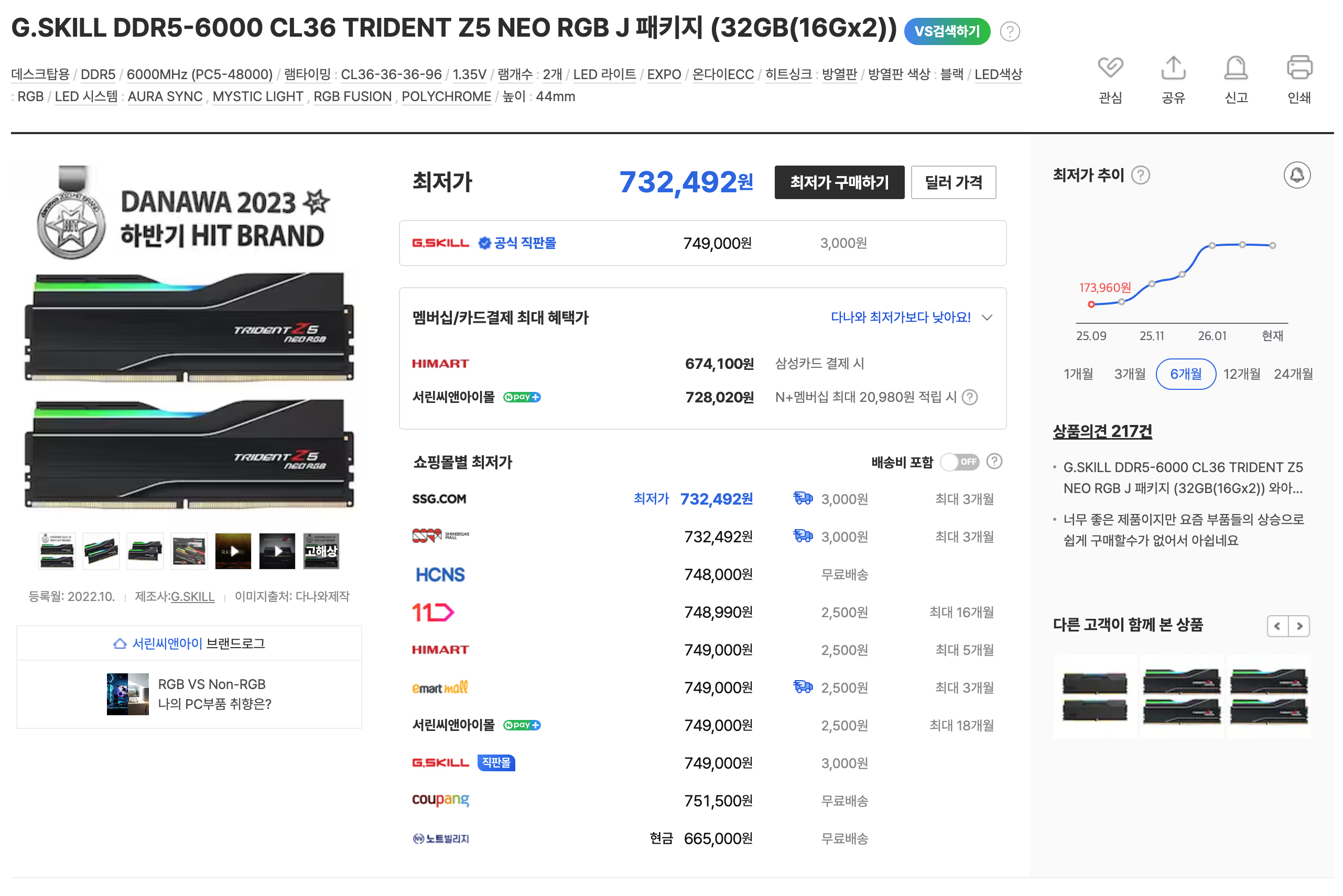 | DDR4 32GB (2x16GB) 3200MHz | 약 7만원 | 22만~39만원 | 약 300% |